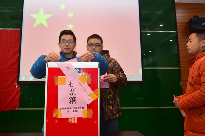 11月30日是无锡市滨湖区人大代表换届选举13选区投票日。设置在生物工程学院茅台厅的生物工程学院选片投票站里,五星红旗鲜艳夺目,红色票箱端放正中,现场气氛庄重而喜庆。选片五百多名选民来到这里参加投票。