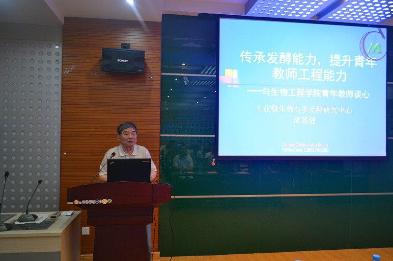 发酵精神传承讲座中,生物工程学院诸葛健教授作了《传承发酵精神,提升青年教师工程能力》的报告。人文素质讲座中,人文学院院长田良臣教授作了《双一流建设与大学教师素养》的报告。工作指导讲座中,生物工程学院院长助理周景文教授围绕青年教师如何成长分享了自己多年来的经验和体会。科研学术报告中,共有7位青年博士分别作了发言,交流了各自研究领域的最新进展和成果。通过听取报告和学术交流,青年教师提高了对教师职业的认识,提高了对生物工程学科的了解,提升了对自身发展的自信。“好老师都有自己的教育信仰”、“名师都是思想者”深深感动了与会的每一位年轻人。“术有专攻、勇创一流”的发酵精神是生工人永远的情怀。“做大学问,向低处行”道出了青年才俊成功的路径。通过交流,大家增进了相互了解,开阔了文化视野,拓展了思维空间,启迪了创新智慧。