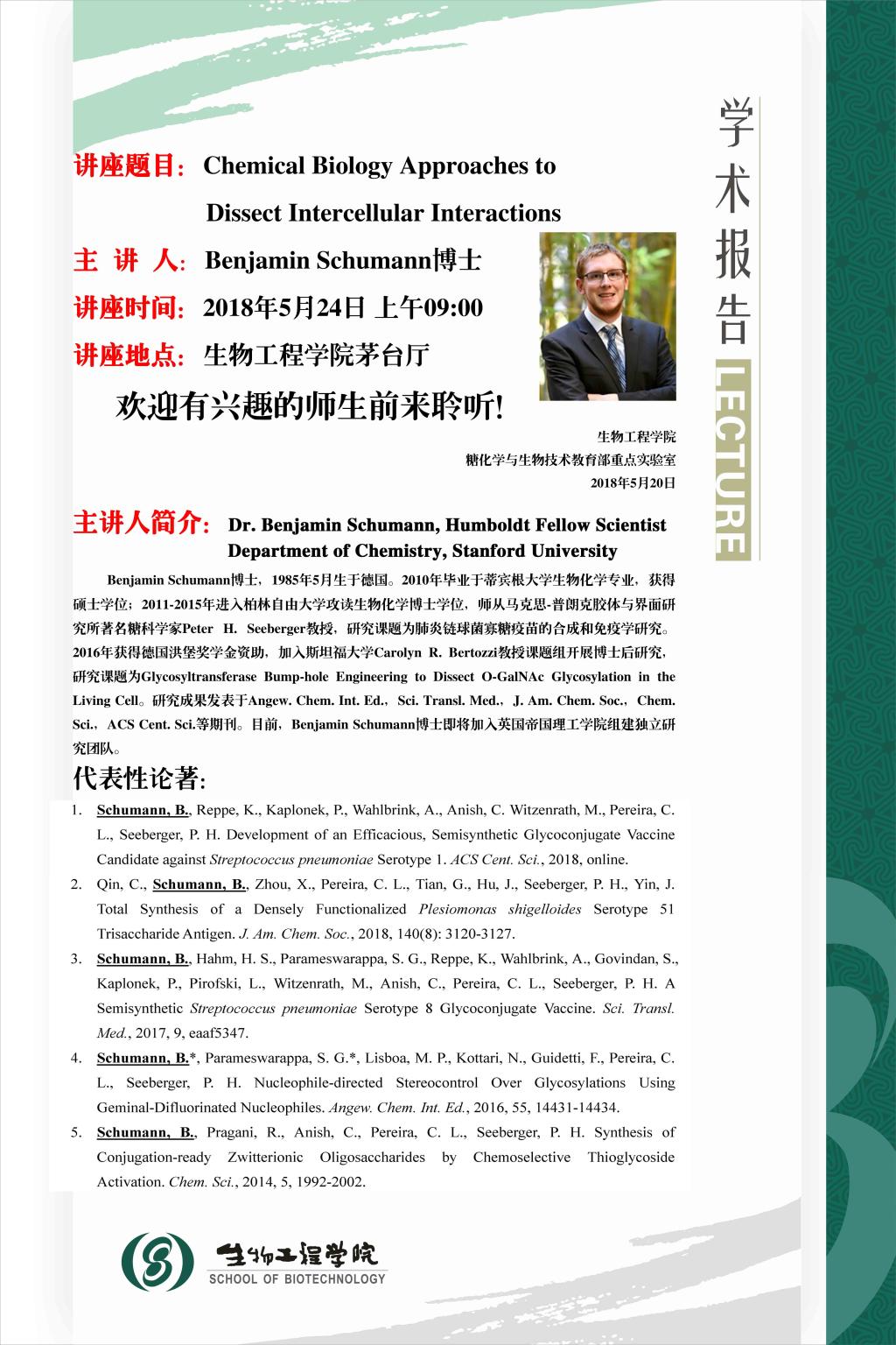 5月24日学术报告:Chemical Biology Approaches to Dissect Intercellular Interactions