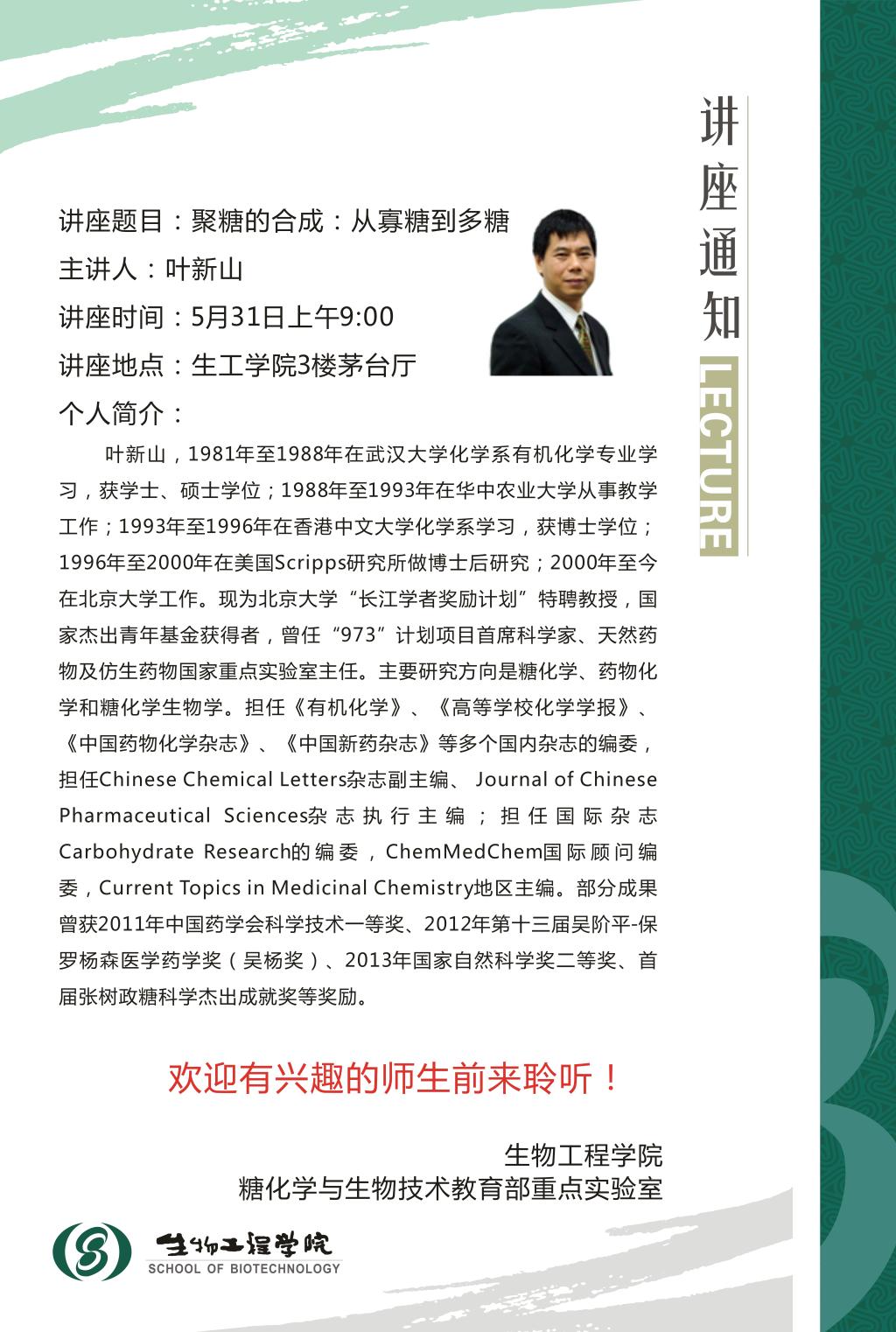 5月30日学术报告:聚糖的合成:从寡糖到多糖