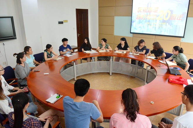 6月29日,生物工程学院“庆祝香港回归祖国20周年座谈会”在生工楼重啤厅举行。学院党委书记黄壮霞,党委副书记、副院长王珏,师生代表参加座谈会。座谈会回顾了香港回归20年来取得的成就,与会代表讲述了自己与香港的故事,探讨了我院以香港高校为借鉴,为提高学生培养质量所采取的举措和设想,也对香港未来的发展进行了展望。