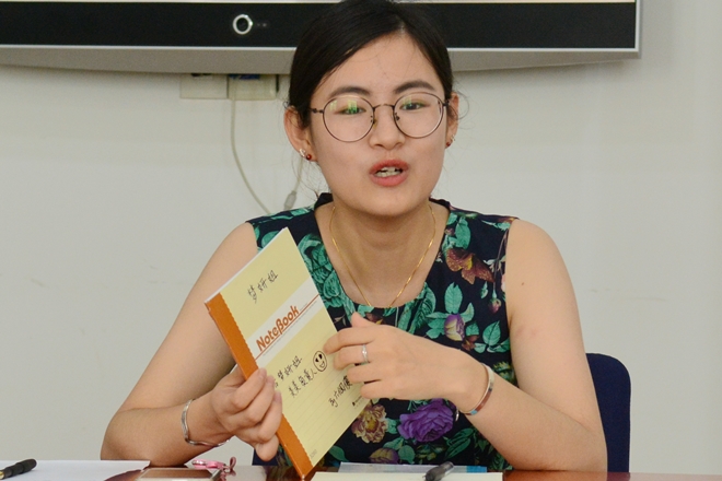 “梦妍姐是美美负责人”生硕1604班的潘梦妍向大家展示了香港朋友赠送给他的赠言笔记本——今年5月,香港理工大学28位本科生来我校生物工程学院进行了为期六天的文化交流和学习活动。潘梦妍和她的同学以志愿者身份与香港师生进行了友好的学术文化与科研交流。这是国家“2017年港澳与内地高等学校师生交流计划”的一部分,“现在我们还会用微信保持联系” 潘梦妍笑着说。