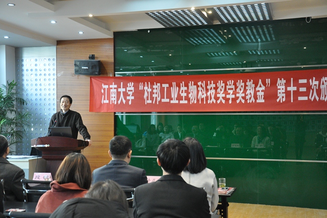 2017年12月20日下午14:00,江南大学第十三届 “杜邦工业生物科技奖学奖教金”颁奖典礼在生物工程学院茅台厅隆重举行。杜邦工业生物科技杰能科中国工厂总经理高志江先生,人力资源负责人许琤女士,亚太区谷物加工技术服务负责人段钢博士;365828.com院长许正宏,生物工程学院党委副书记、副院长陈勇出席颁奖典礼。颁奖典礼由葛玲老师主持。