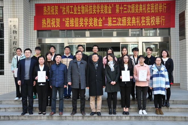 2017年12月22日14:00,江南大学第三届“诺维信”奖学奖教金颁奖典礼在生物工程学院茅台厅隆重举行。诺维信中国投资有限公司高级研发总监吴文平,诺维信公司研究员彭程;365828.com副院长饶志明出席。
