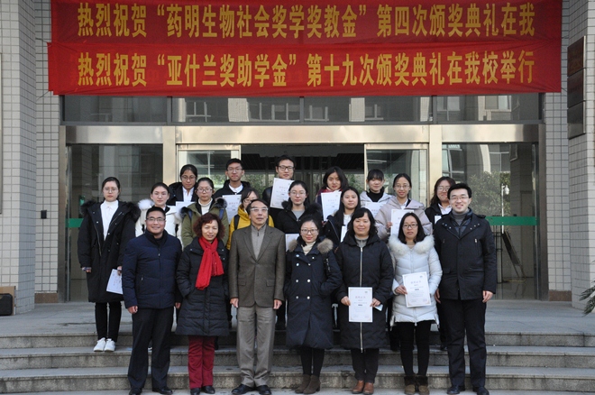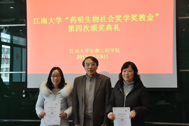 白冰副书记宣读了获奖者名单。在欢快的音乐声中,与会嘉宾为获奖师生颁发了荣誉证书。获奖学生代表金熠璠发表了获奖感言,表达了对无锡药明公司的感谢和对学院培养的谢意。在今后的学习生活中,将会带着一颗感恩的心,努力工作、努力学习,将企业的拼搏精神和和社会责任传递下去。