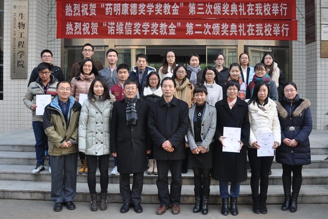 诺维信公司吴文平博士和生物工程学院堵国成院长为获奖学生颁奖