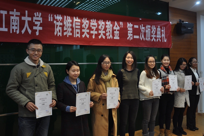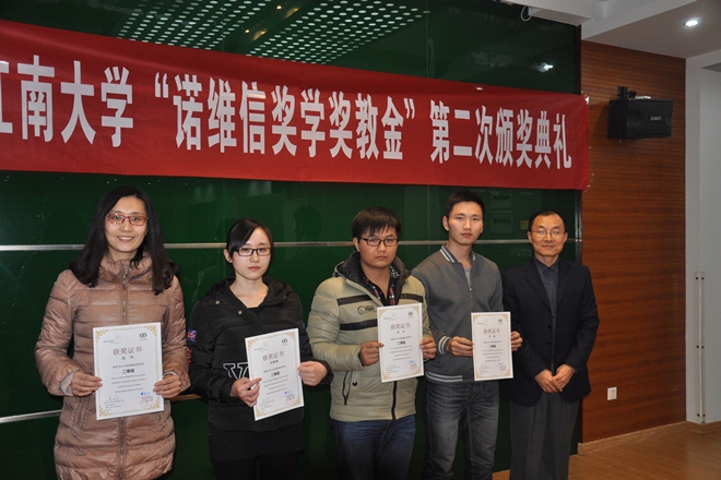 12月15日,江南大学第二届“诺维信”奖学奖教金颁奖典礼在生物工程学院茅台厅隆重举行。诺维信中国投资有限公司高级研发总监吴文平,诺维信中国投资有限公司部门经理邓军,诺维信中国投资有限公司研究员彭程;365828.com院长堵国成,生物工程学院党委副书记、副院长王珏出席。