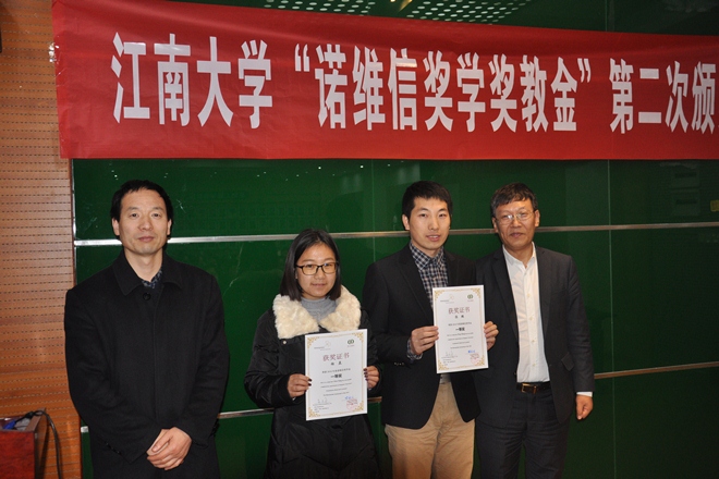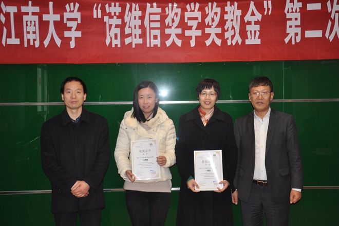 诺维信公司吴文平博士和生物工程学院堵国成院长为获奖教师颁奖