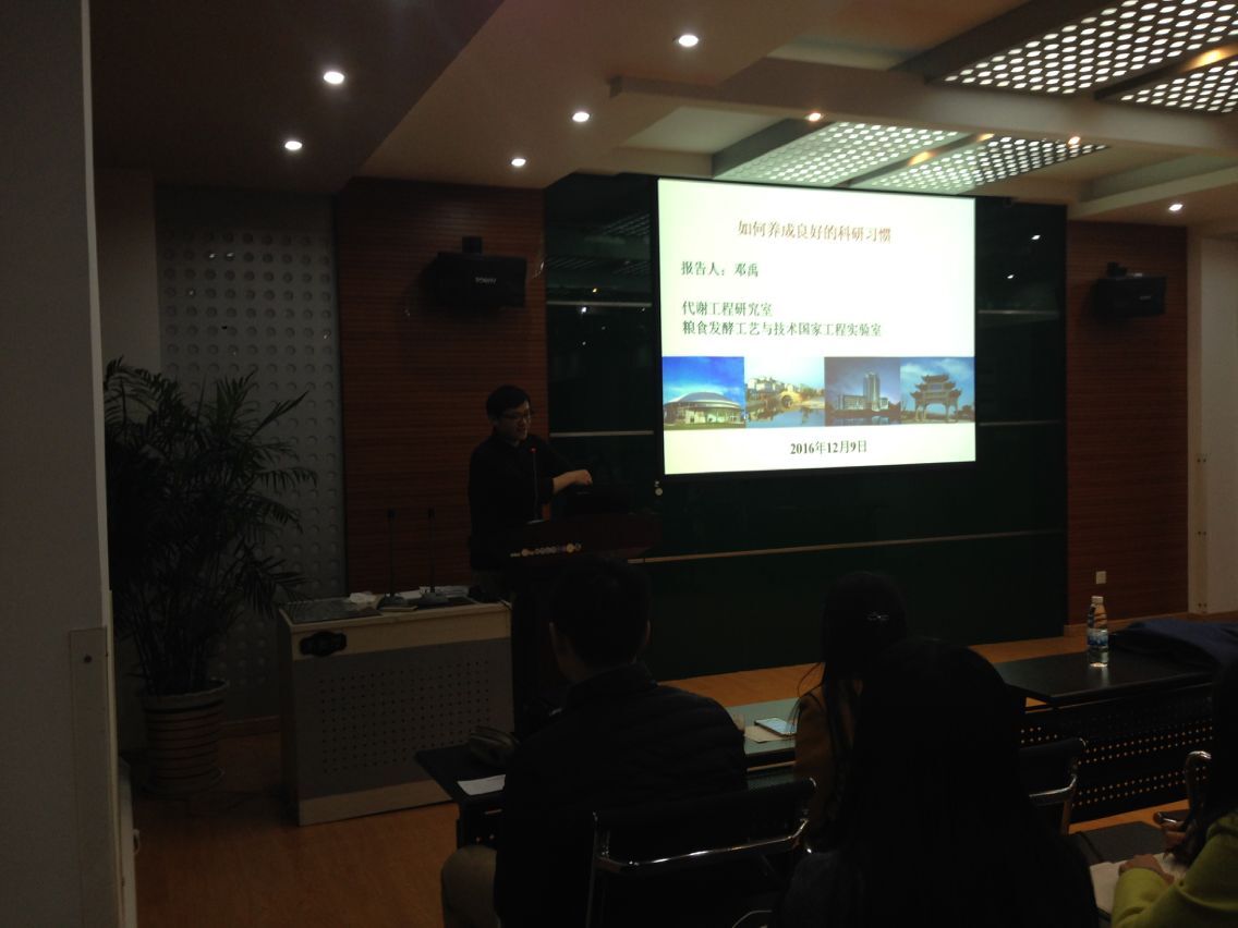 邓禹教授是从我们生工学院走出的毕业生,是江南大学粮食发酵工艺与技术国家工程实验室教授,博士生导师。曾在美国堪萨斯州立大学任职助理教授,博士生导师。在常春藤联校的达特茅斯学院师从世界著名的生物能源教授Lee Lynd从事博士后研究工作两年。主要从事利用微生物生产高附加值精细化工原料的代谢工程,合成生物学和系统生物学研究。邓老师的到来受到了同学们的热烈欢迎,现场座无虚席。
