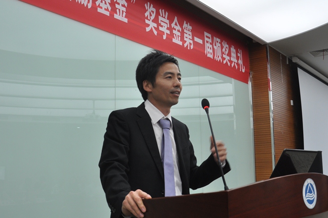龚虹女士宣读了获奖名单,李乃强先生和饶志明副院长共同为获奖学生颁发了奖金证书和奖杯。获奖同学代表郅岩向所有嘉宾致谢并发言。